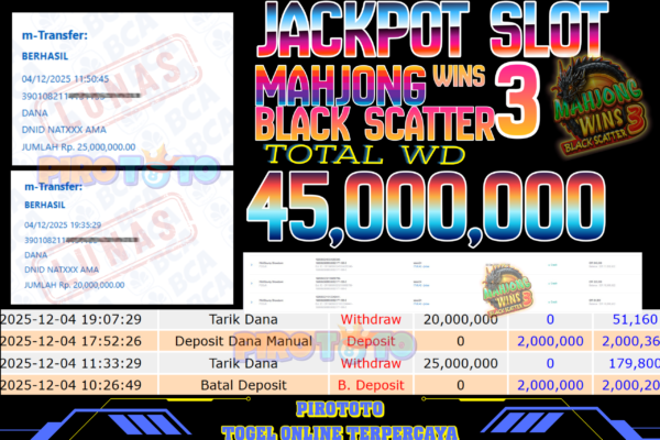 Bukti Kemenangan Permainan Slot Mahjong Wins 3 Black Scatter Di Situs PIROTOTO Untuk Akun Kenxxxx